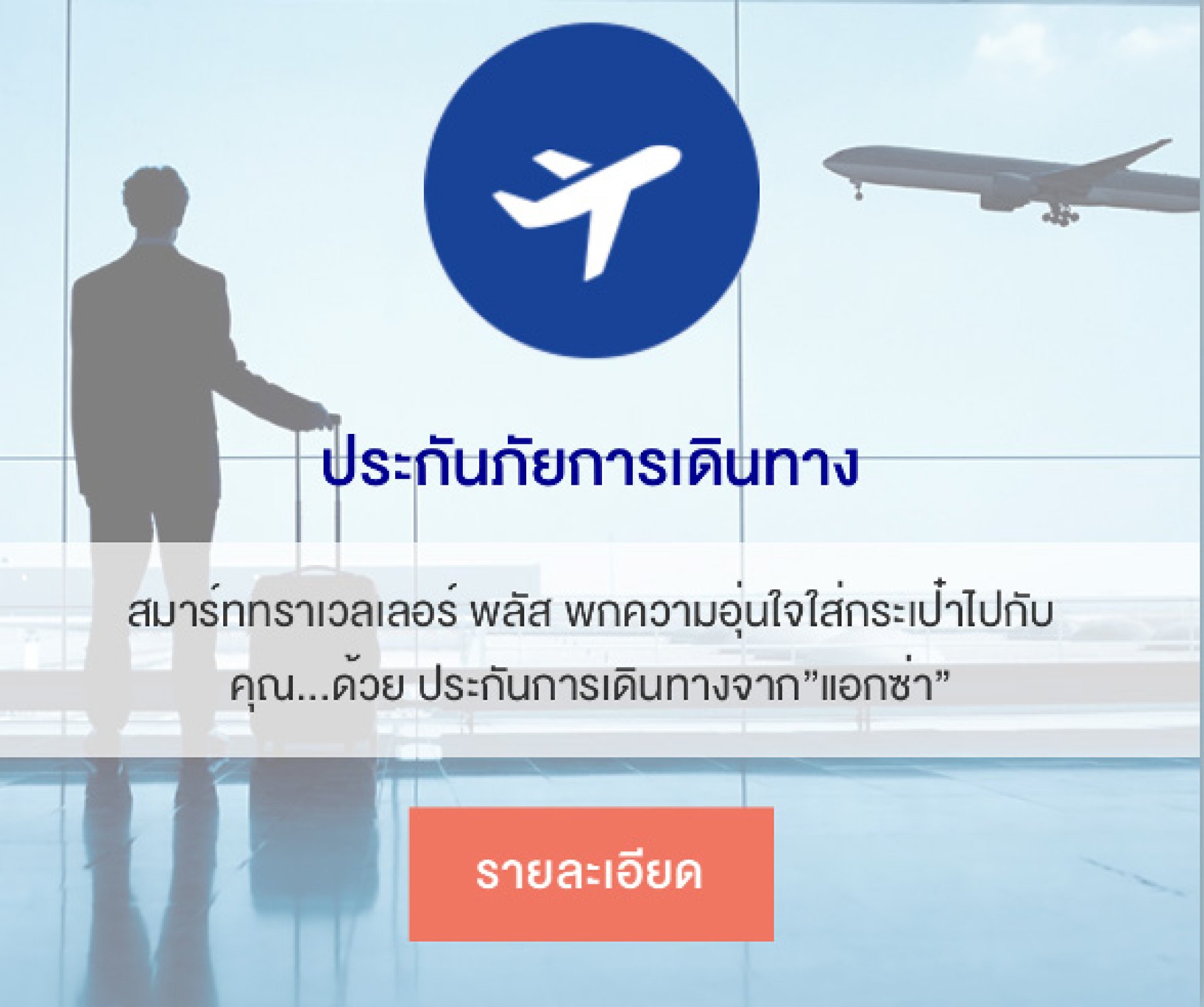 ประกันการเดินทางต่างประเทศ หรือประกันเดินทางในประเทศ ช่วยให้คุณอุ่นใจและไม่ต้องกังวลกับเหตุการณ์ไม่คาดคิด ทั้งเจ็บป่วย อุบัติเหตุ เที่ยวบินล่าช้า จนถึงการพลาดการต่อเที่ยวบิน หรือการยกเลิกการเดินทาง